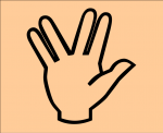Aber wenn wir jetzt StarTrek-Fans unter uns haben, dann ist denen schon längst klar geworden, dass das auch der Vulkanier-Gruß ist, den wir vor allem von Mister Spock kennen. Den gibt es inzwischen sogar als Computersymbol – hier sehen sie es. Und diese Übereinstimmung ist kein Zufall, denn sie haben bei der Planung der Filme tatsächlich diese jüdische Segensgeste kopiert.
